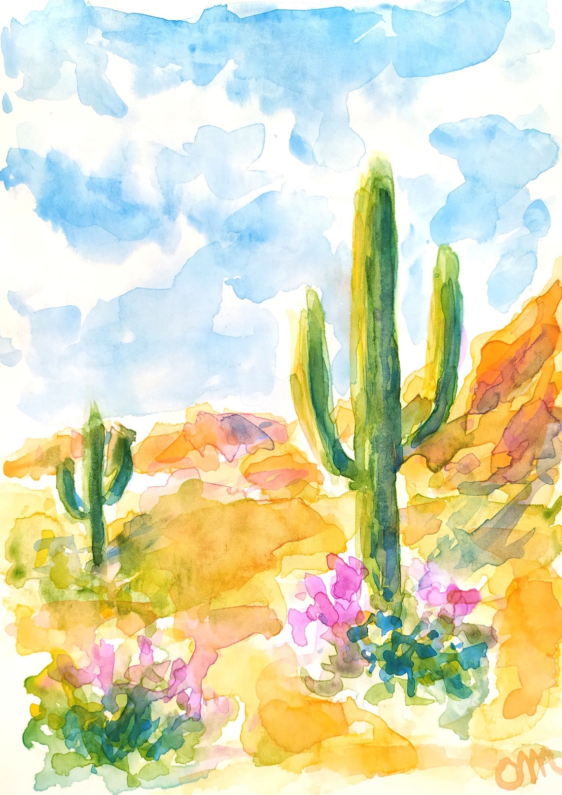 Watercolor Painting Desert Add layers for depth and detail. Watercolor applications are gradually layered to develop. learn how paint a desert landscape with watercolors. to paint a desert landscape in watercolor, start with a light wash for the sky and sand. home / art instruction / 20 watercolor how to’s / how to paint a southwest desert scene step 1. Watercolor Painting Desert.